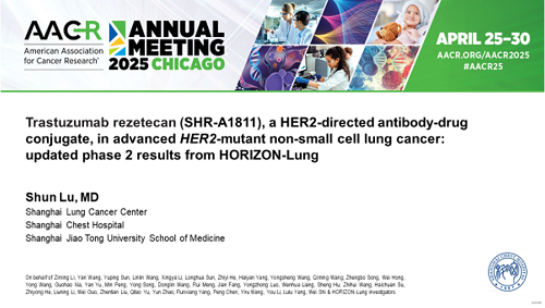 2025 AACR口头报告|利来国际w66创新药瑞康曲妥珠单抗治疗晚期HER2突变非小细胞肺癌研究结果披露